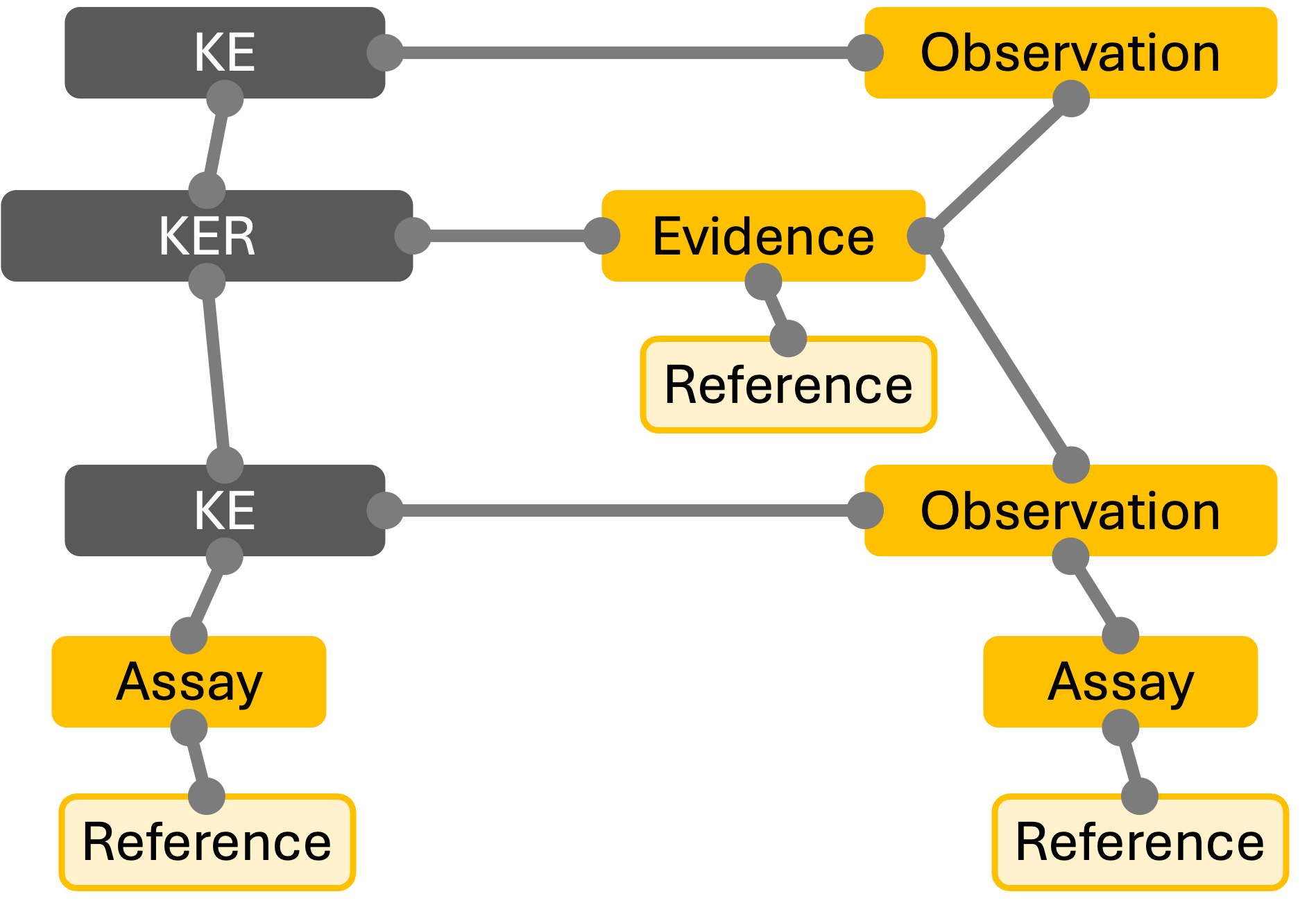 - Assays could be linked to Key Events through observations data objects, which were nested within a study design object.
